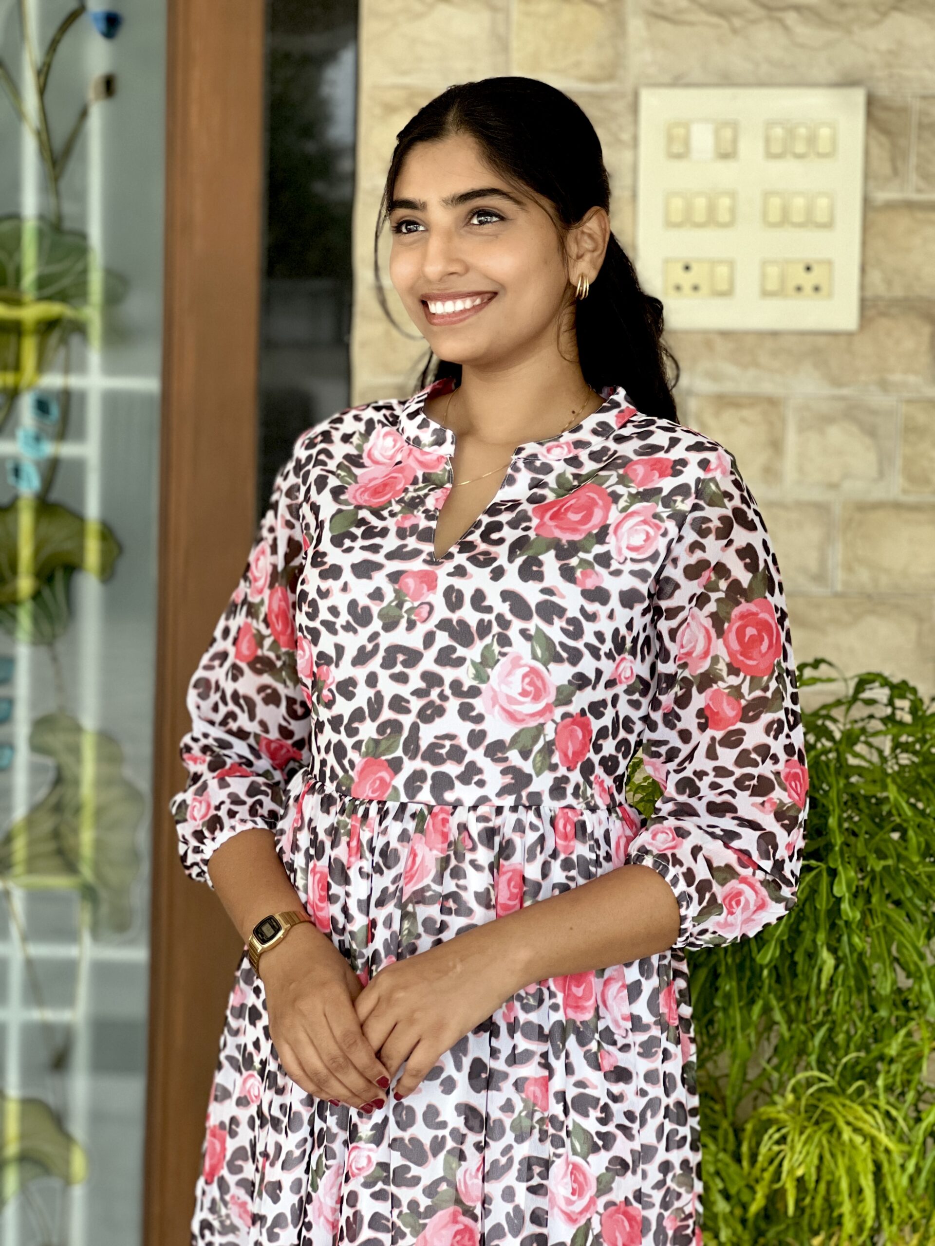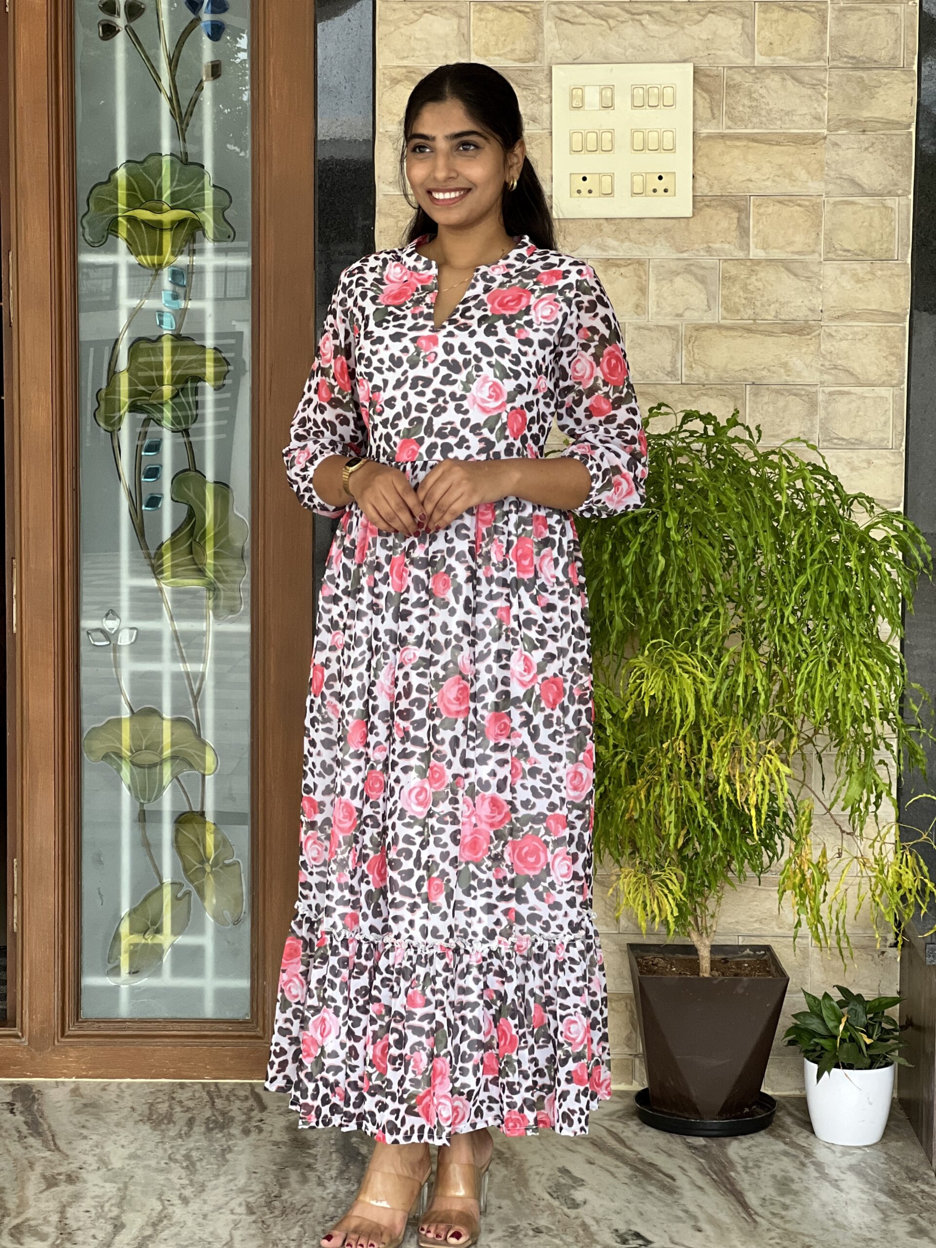 Leopard floral georgette maxi