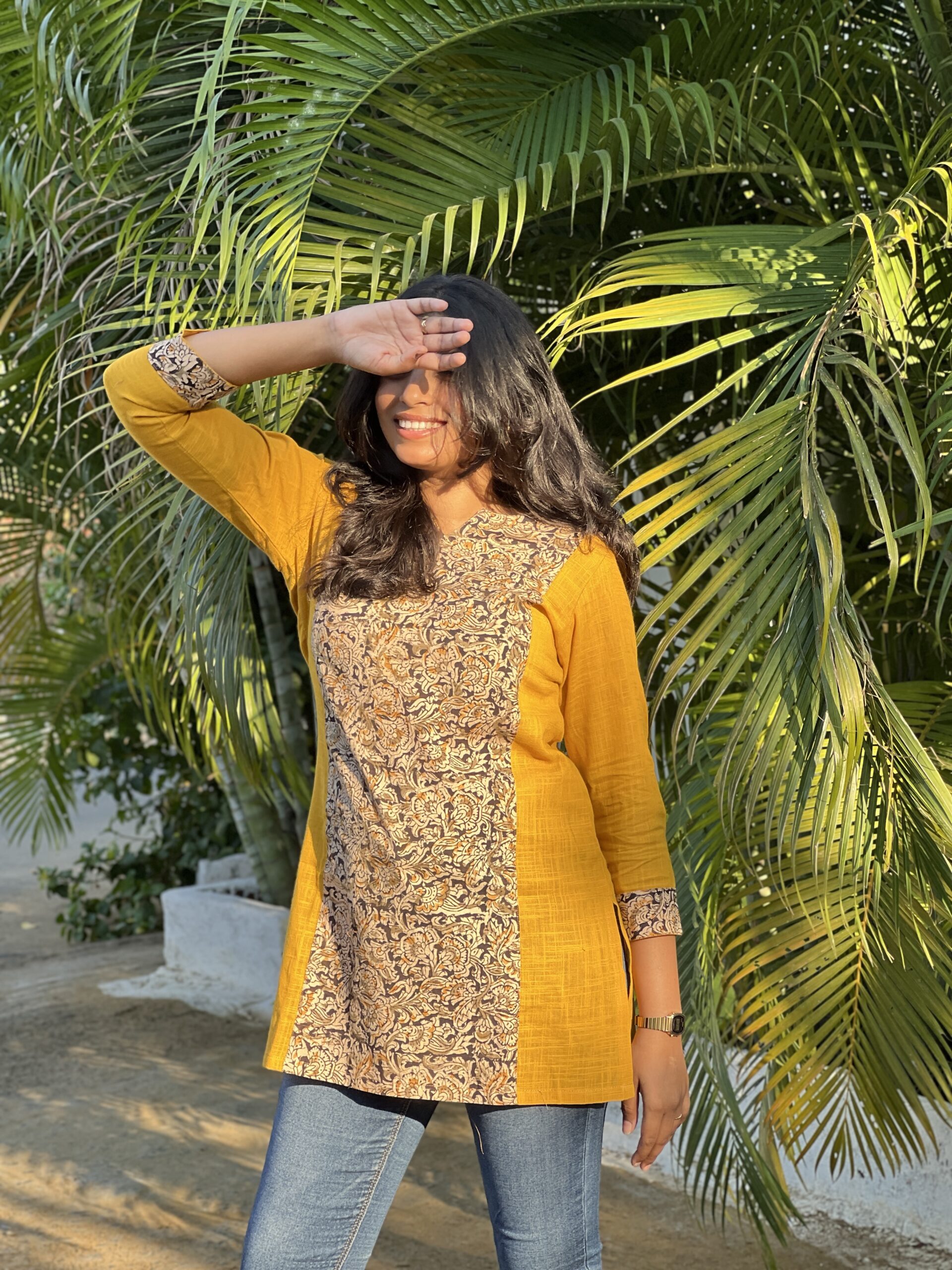 mustard yellow black patchwork short