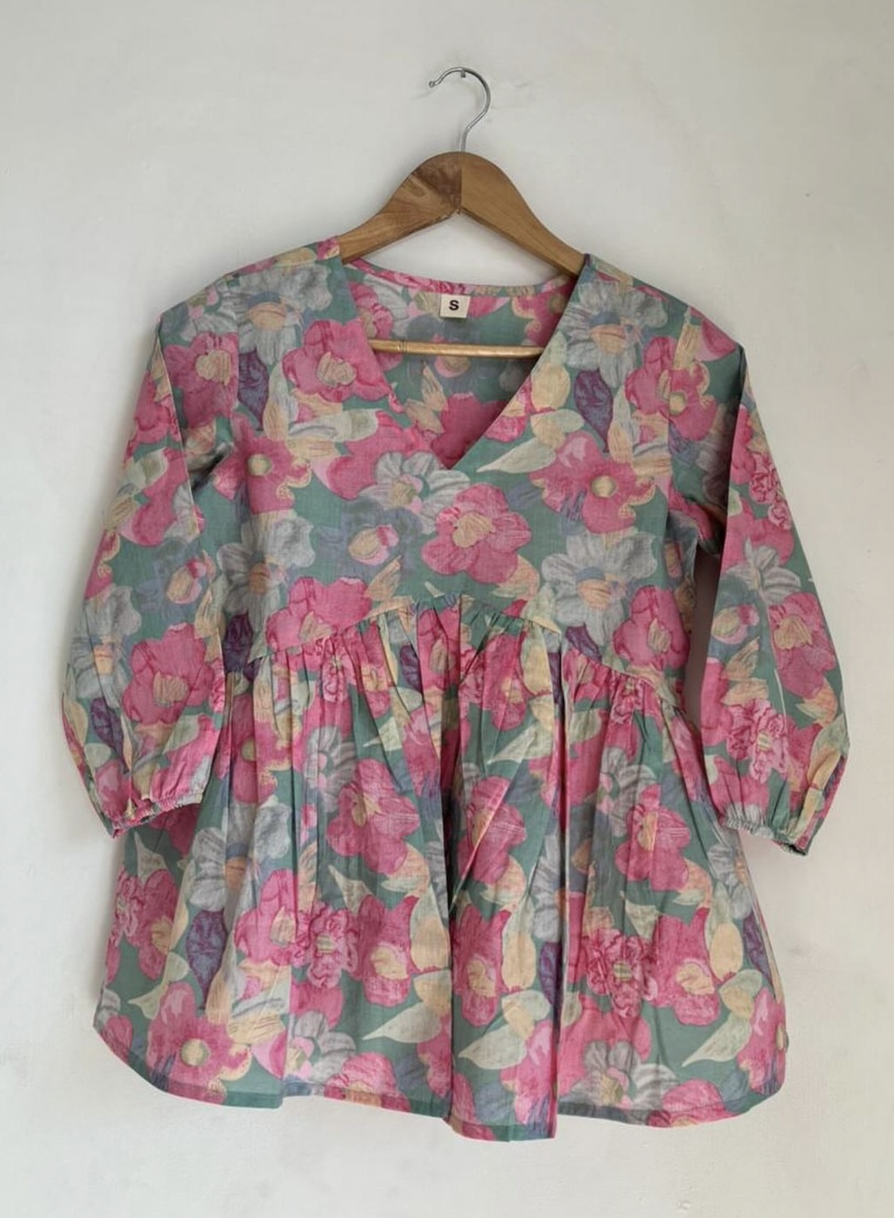 Pastel green & pink peplum short top