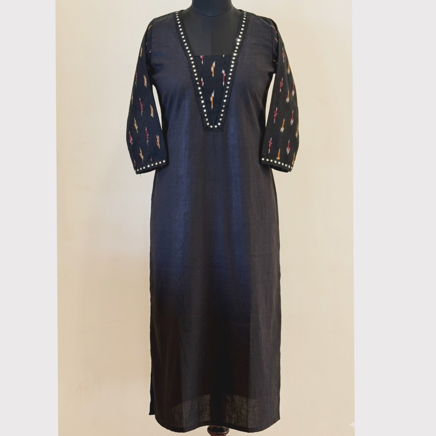 Plain black ikkat sleeve kurta
