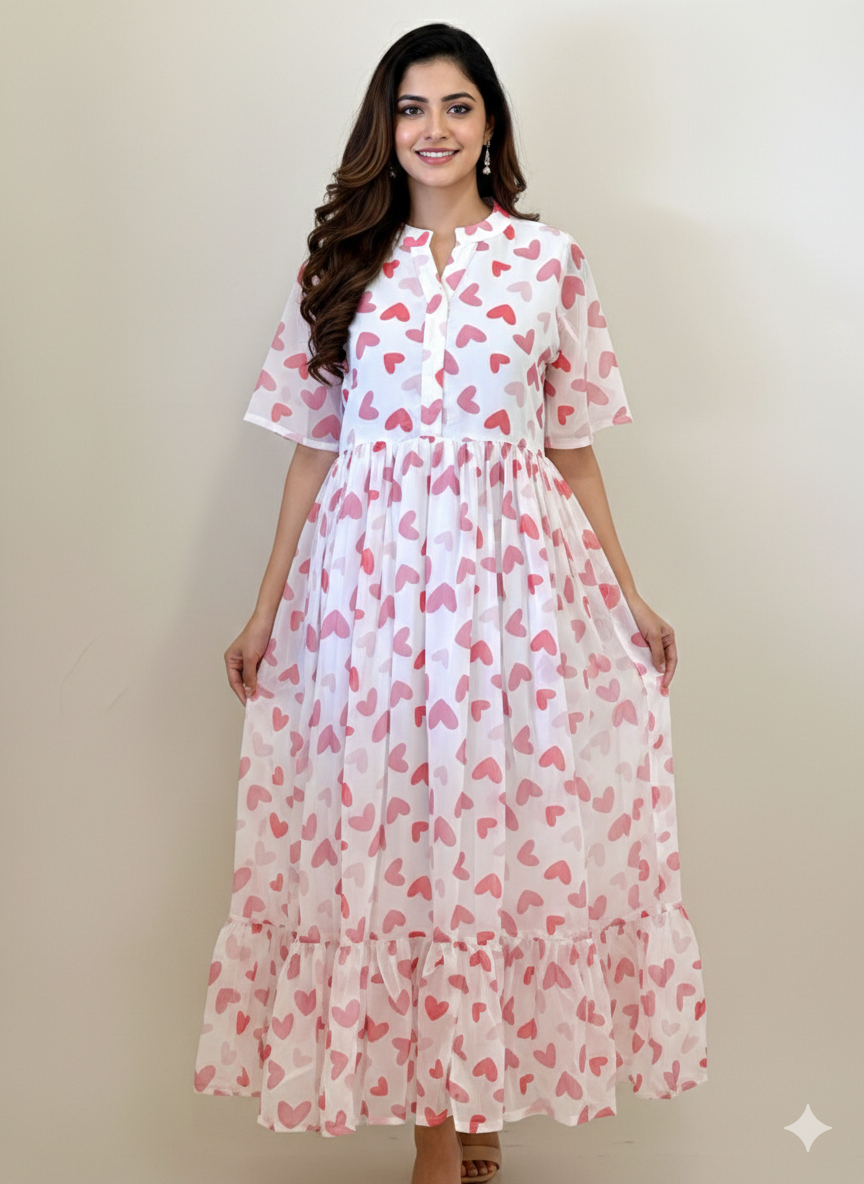 Red hearts georgette maxi