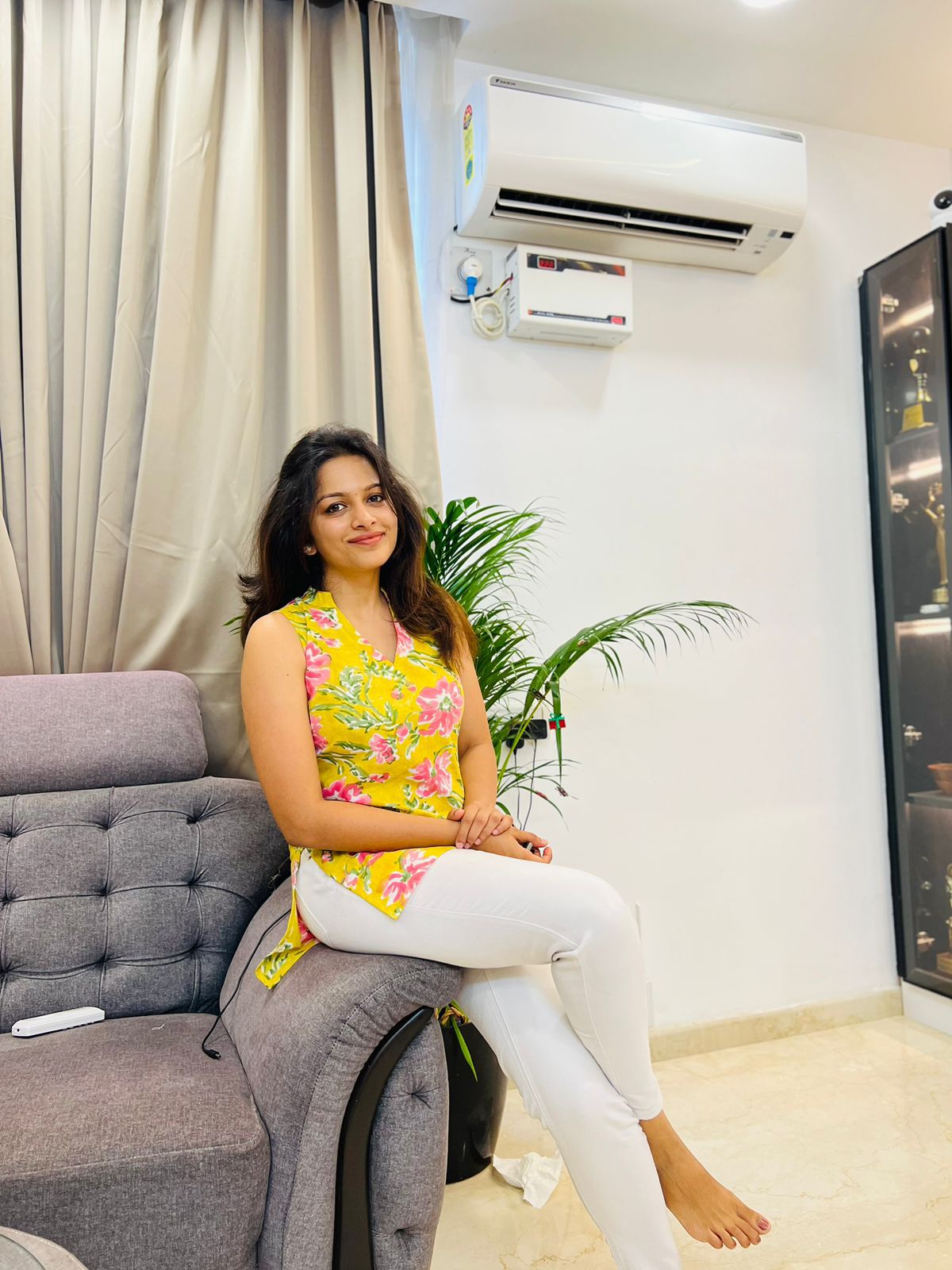 Yellow floral short top
